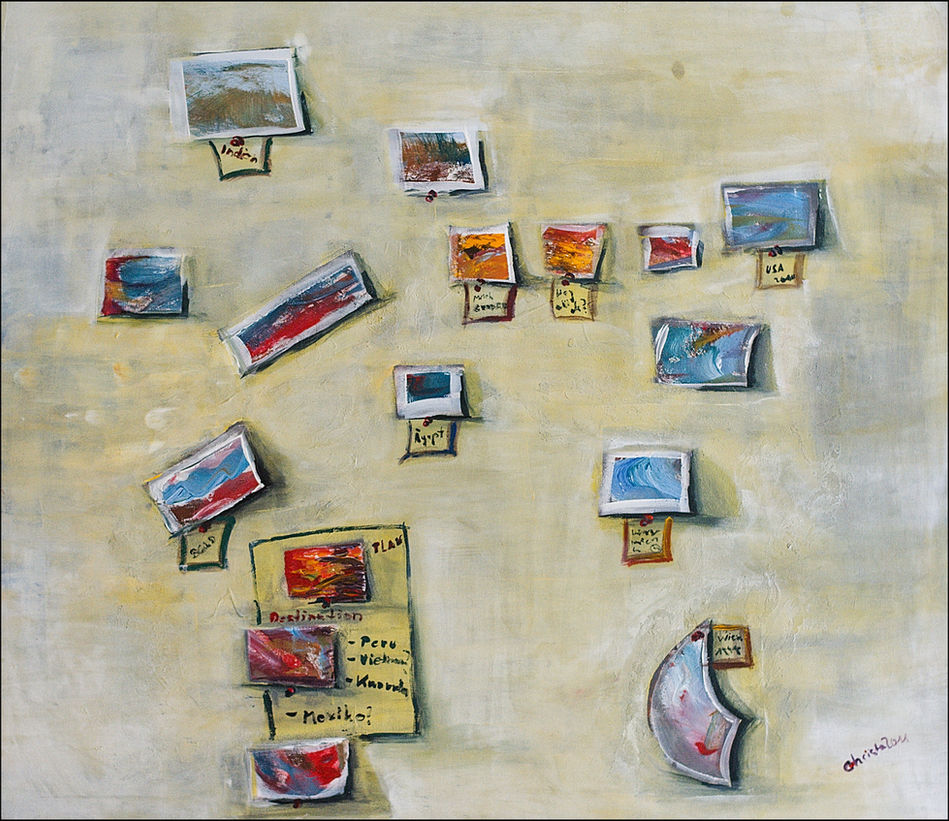 Den Schritt über die Grenze wagen und das was innen ist, zum Ausdruck bringen. Ein Schritt über die Grenzen ist das Experimentieren mit verschiedenen Trägermaterialien, dies führt oft zu überraschenden Ergebnissen. Der Betrachter erhält so einen neuen Ausschnitt der Welt vor Augen gestellt.